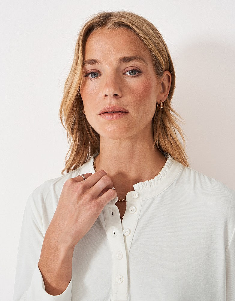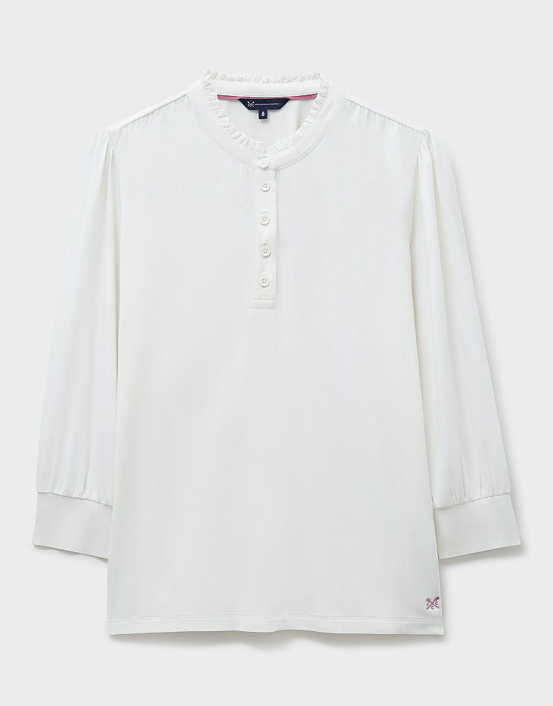 Crew Clothing - Pretty Frill Jersey Blouse in White Linen