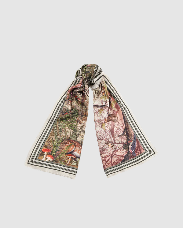 Fable's Woodland Tales Scarf is like a forestfairy-tale come to life! Featuring a gorgeous array of British creatures, from chirping song birds to resting does, this scarf will add a sprinkle of magic and whimsy to any autumnal outfit. Crafted in a soft, midweight material, it is designed to keep the chill at bay during frosty morning walks, or looks elegantly fabulous draped over your shoulders when sat in your favourite country pub with a glass of your go-to tipple!