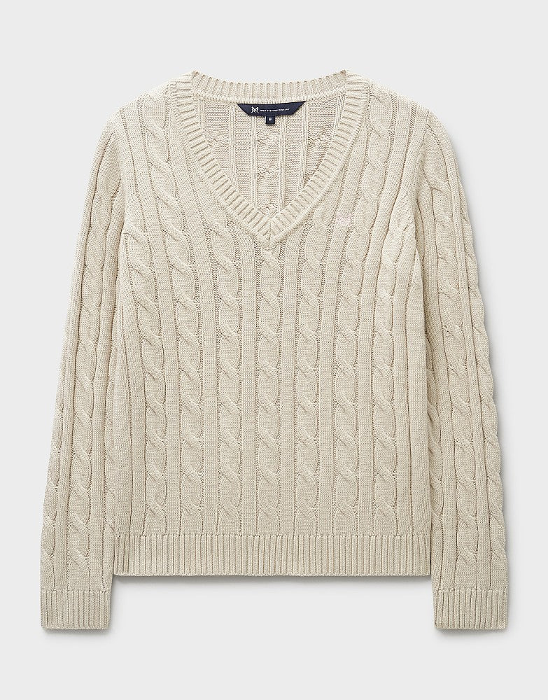 Crafted from cotton with a touch of luxurious cashmere, Crew's V Neck Chunky Heritage Cable Jumper is a great piece to have at hand throughout the colder months. Thick, twisted stitching adds texture and cosiness, while the creamy Oatmeal marl fabric is super easy to pair with jeans or to layer over printed shirts.