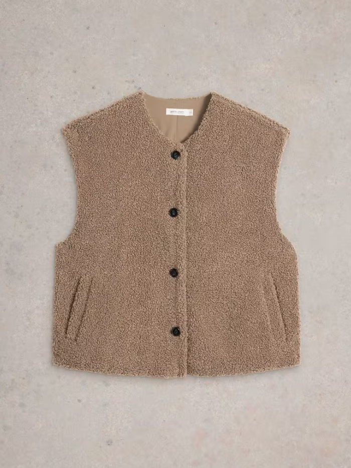 If you're looking for that one cosy piece that can be layered over anything and everything, White Stuff have got you covered with their Borg Gilet! Super warm and lovely to wear, the sleeveless design, fluffy outer, and dark natural colour will add comfort and winter style to dresses, jumpers and shirts alike.