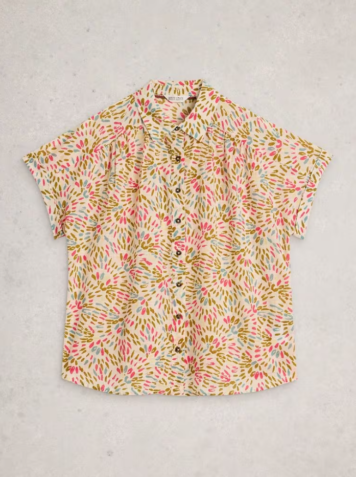 White Stuff's short sleeved Orla Shirt is crafted from a light and breezy organic cotton, making it the ideal piece for warmer months. With a relaxed fit and a fun pattern, it will also fit nicely into your holiday packing! Wear this shirt unbuttoned over vest tops or tuck into your favourite denims.