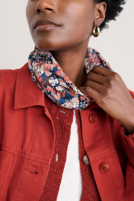 The Seasalt Handyband in Moorland Floral Squash is a versatile and stylish accessory made from soft, organic cotton jersey with a hint of stretch. Perfect for any season, it can be worn as a headband, snood and any other way you can think of!