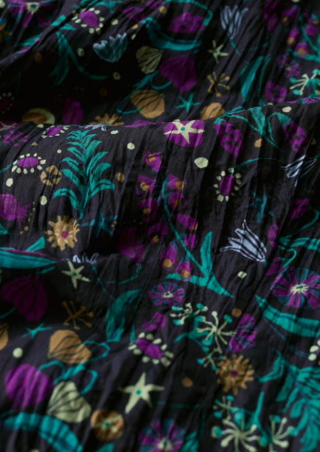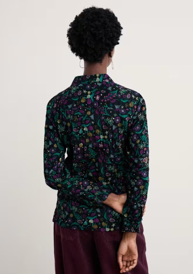 Seasalt’s organic cotton Larissa Shirt in Illuminated Garden Onyx brings a whisper of wonderment to your wardrobe with it's mystical floral print. It's casual crinkled texture adds character—just wash and twist to keep the look fresh! Designed with a flattering semi-fitted cut, it’s perfect for throwing on over jeans paired with some ankle boots for effortless style all year round.