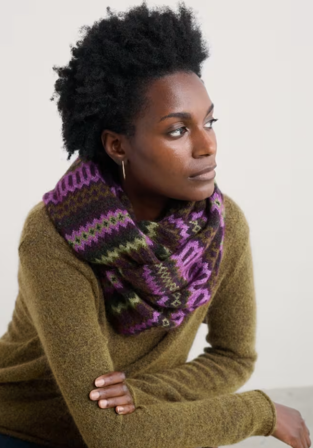 Wrap yourself in the comfort of this soft, wool blend Morning Cliff Snood by Seasalt this winter. Ensure you stay warm and snug when walking the dog or running errands around town, while staying on trend with the stunning fair isle design in rich colours inspired by the nature of Cornwall.