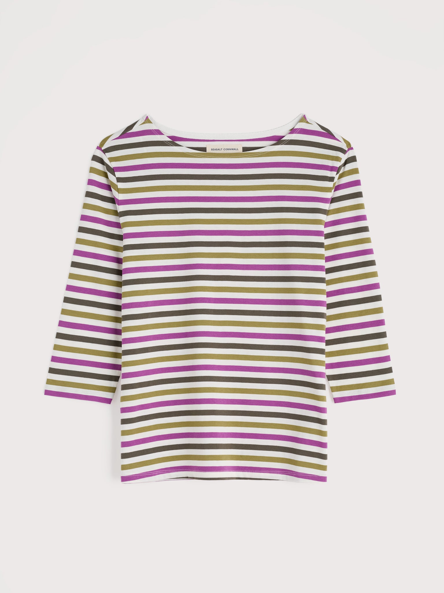 Enjoy the playful charm and add effortless style to your casual outfits with this Sea Salt Sailor Top in Tri Breton Cornish Fennel. Crafted from soft, breathable organic cotton with a relaxed fit and boat neck, this 3/4 sleeve classic features vibrant, yarn-dyed stripes in coastal hues that are perfect for pairing with your favourite jeans.
