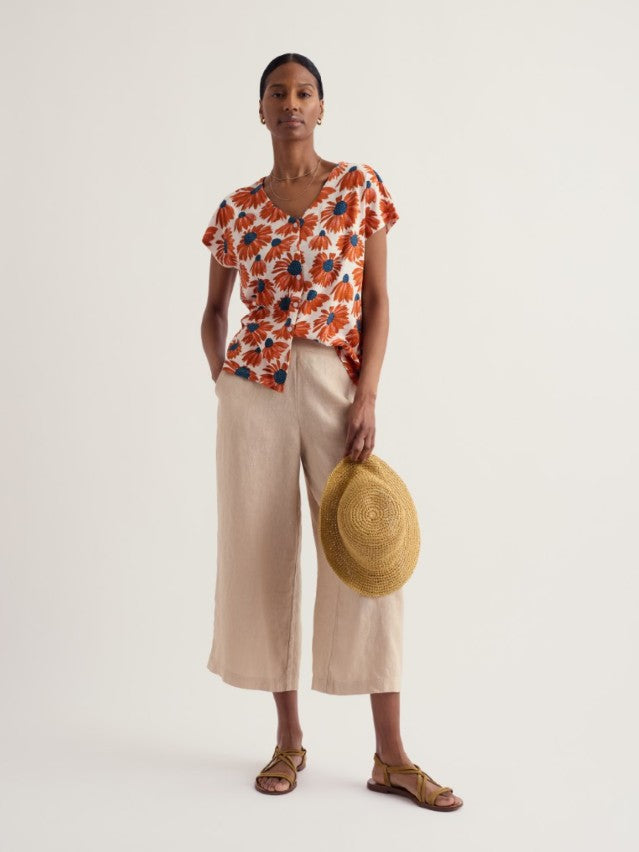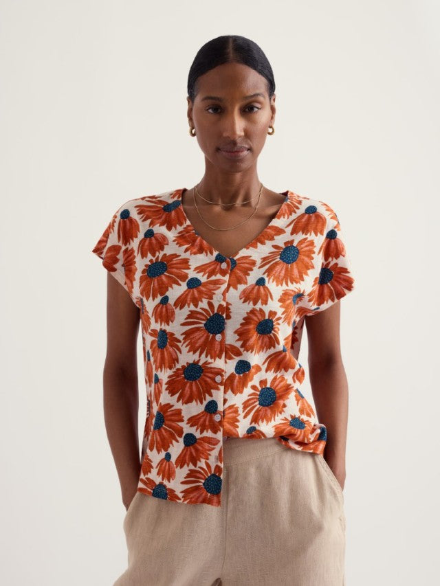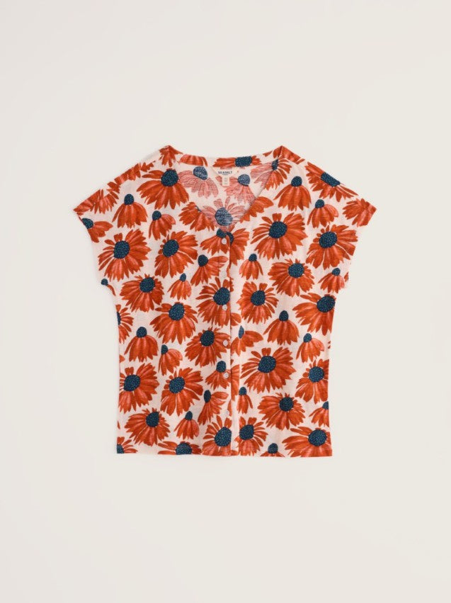 Seasalt's short sleeved Studio Glass Top features an easy, carefree silhouette and is crafted from breathable organic cotton, so you can stay cool and comfortable on summer adventures. It also has a full placket of pretty buttons, a feminine V neckline, and is printed with a lovely floral pattern.