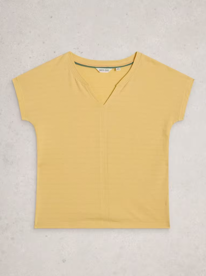 White Stuff's Nelly Notch Tee is back again, this time in a buttery yellow with added texture for a little extra interest. Crafted from fairtrade cotton and styled with a notch neckline, this t-shirt will be sure to elevate your everyday tee collection!