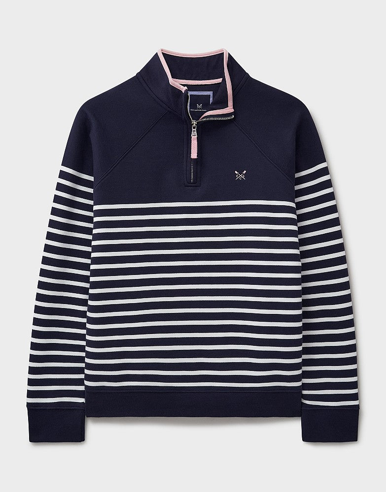 Crew's striped Half Zip Sweatshirt will be your new go to layer through the inbetweeny seasons! The funnel neck and soft washed fabric is sure to keep you cosy on Spring walks or chilly evenings spent on the sofa.