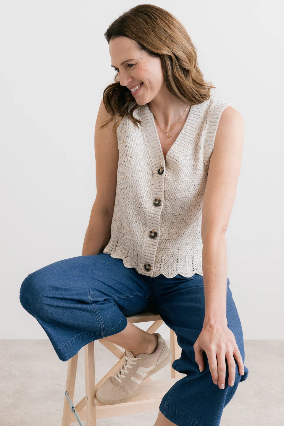 Lily & Me's lovely Celandine Tank is the perfect light layer for all seasons! The flecked 'neppy' knit, giving the ecru colour a soft, textured finish, pairs easily blouses, adds interest when popped on over dresses, or even looks great on it's own with a pair of jeans.