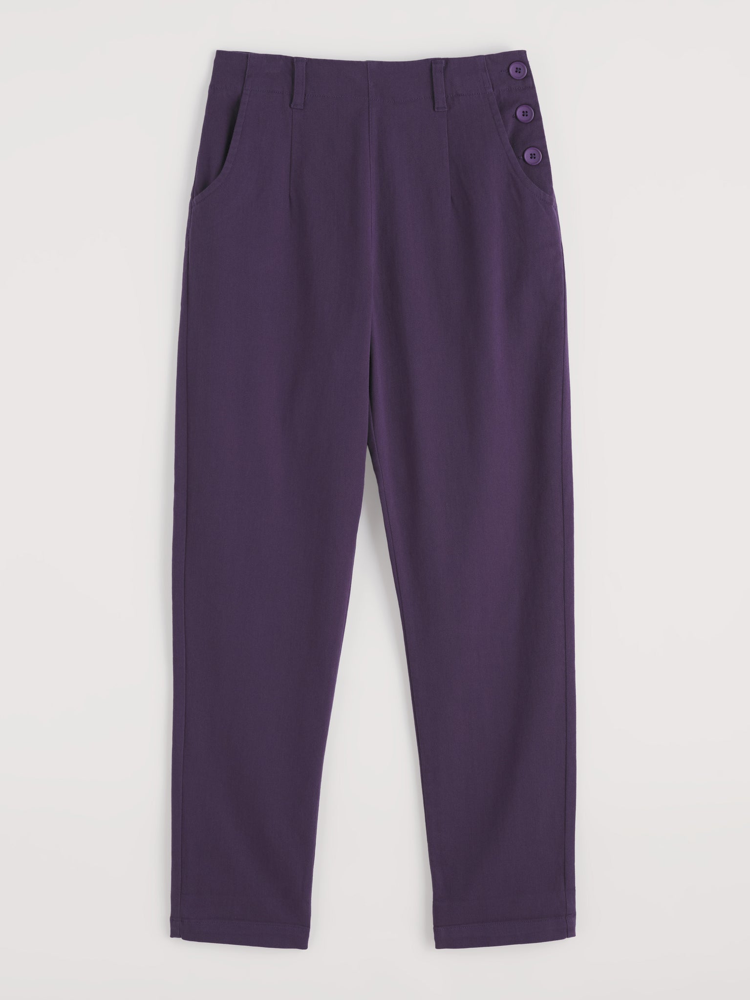 Popular all year round, Seasalt's Waterdance Trousers are back this season in a rich Dark Violet colour. The organic cotton fabric is soft and breathable, with added stretch for ease of movement, and the tapered leg looks smart over both ankle boots and sandals.