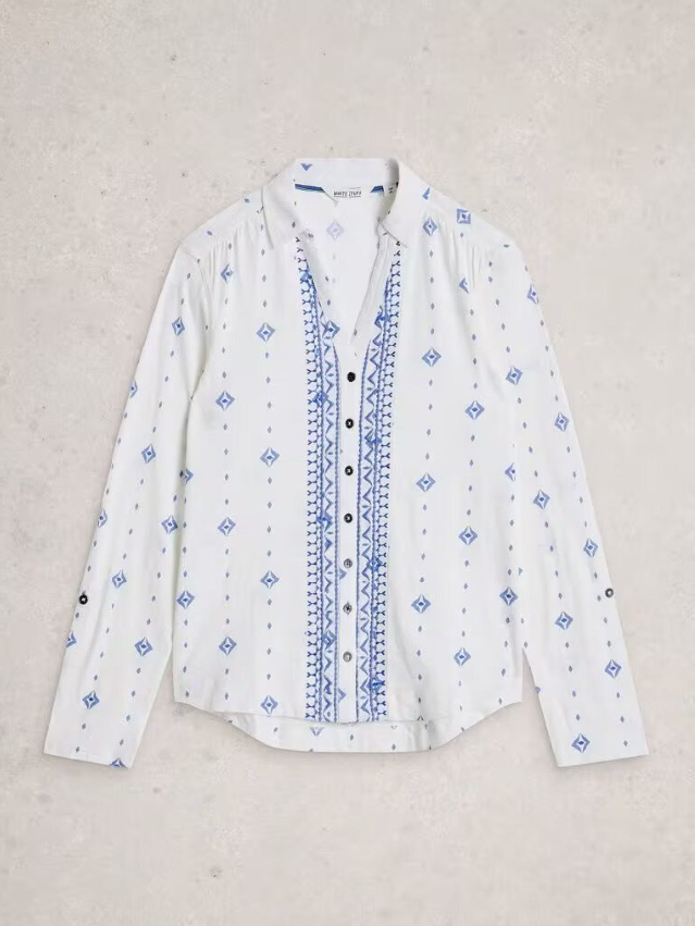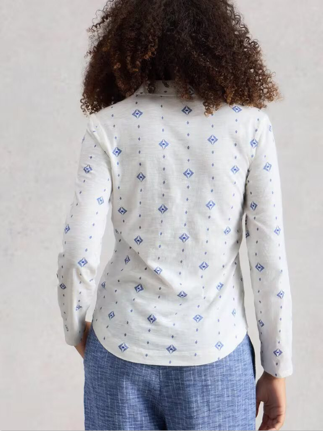 White Stuff - Annie Jersey Shirt in White Print