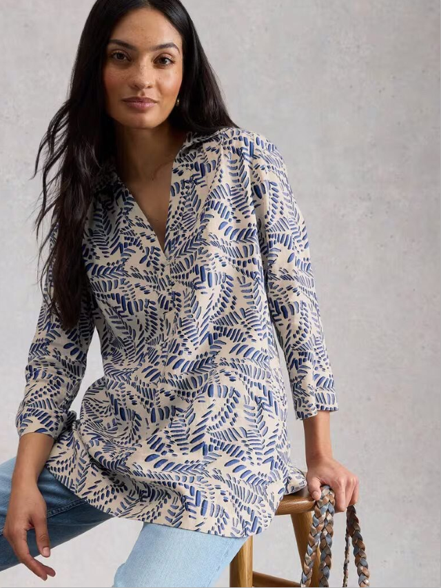 Give your summer top collection a stylish update with White Stuff's Bianca Linen Tunic in their fresh Ivory Print. The notch neckline, 3/4 sleeves, and light linen fabric make this top an easy breezy option for the warmer months. Simply wear it over jeans or leggings on casual days.