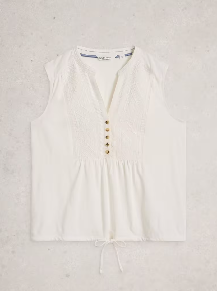 White Stuff - Peony Sleeveless Shirt in Brilliant White