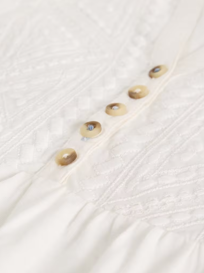 White Stuff's Peony Sleeveless Shirt is a great staple for summer adventures, lunches, and relaxing in the garden. The broderie pattern adds interest and femininity to this design, while delicate buttons down the front and a drawstring at the hem give it it's stylish finishing touches.