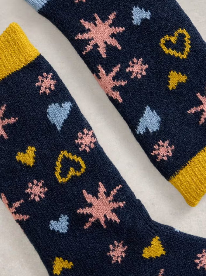 Get your feet ready for the winter months with White Stuff's Star and Hearts Cabin Socks! With a design that is reminiscent of fireworks in the night sky, this cosy pair will add a little fun and magic to your winterwear. Wear them under walking boots, with your PJs on the sofa, or gift them to friend who needs a little extra comfort this season!