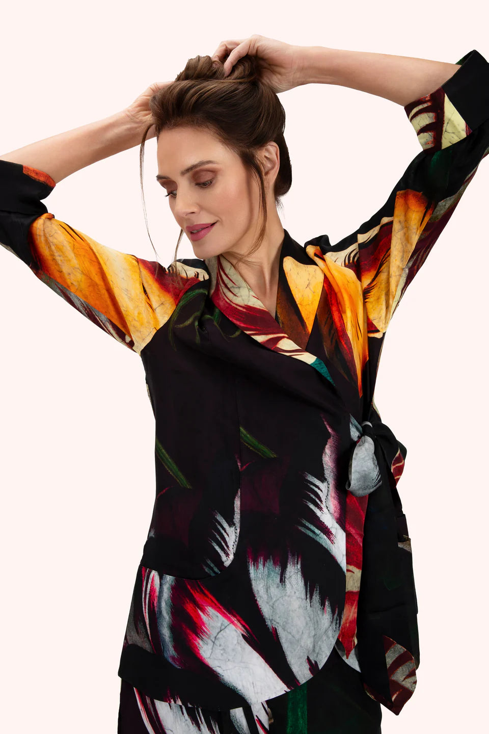 Ooze elegance everywhere you go when you wear Powder's Luxury Co-ord. Crafted from a silky soft modal and featuring vibrant florals printed upon a sleek black background, this unique set is sure to turn heads on evenings out.
